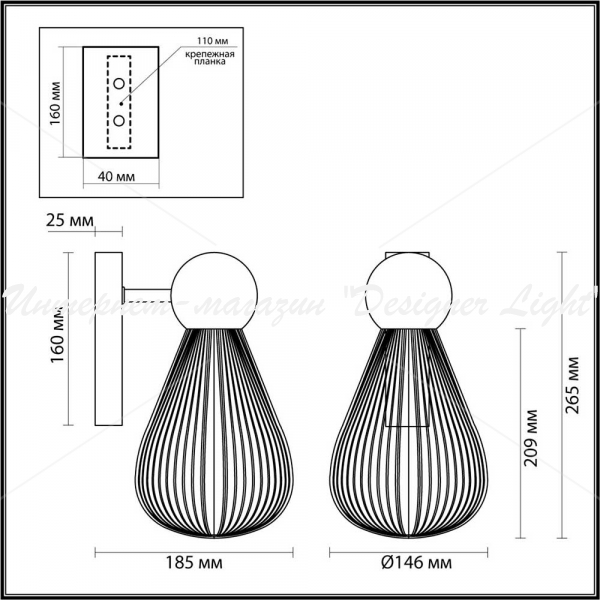 - Форма рассеивателя Овал