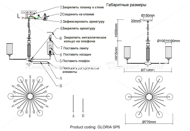 - Количество плафонов 6
