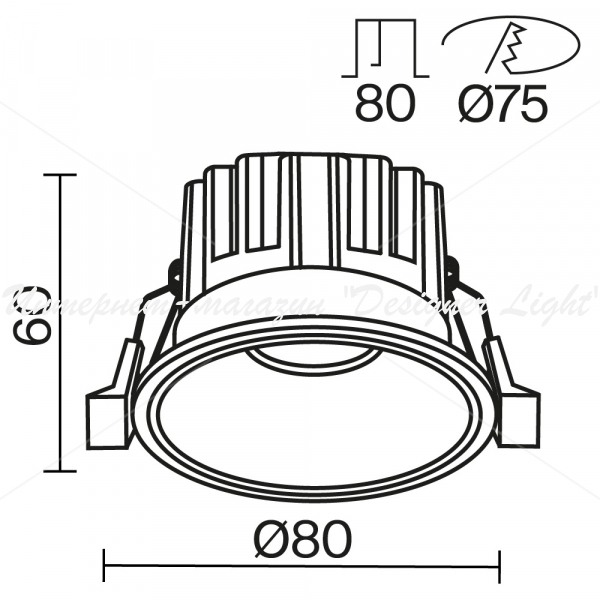 - Диаметр врезного отверстия, мм 75